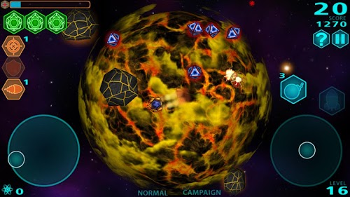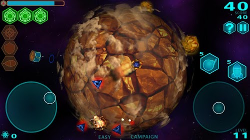 Fly your spaceship around different planets. Destroy asteroids. Terminate different enemies using guns, bombs and missiles. Collect upgrades, bonuses and tokens.