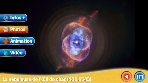 Sélectionne le sujet qui t’intéresse en l’effleurant du doigt. Photos, vidéos, textes surgissent à l’écran.Throw yourself to conquer the SKY and SPACE with this FREE developed with the support and expertise of the CNES (Centre National d'Etudes Spatiales) application.