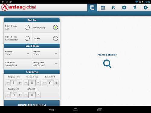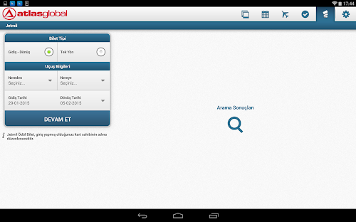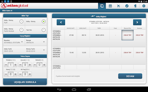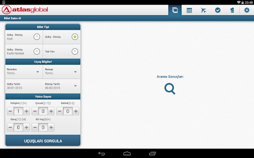 Atlasglobal Android Tablet uygulaması ile artık her an her yerden uçuşunuzu planlamanız ve biletinizi almanız mümkün.
