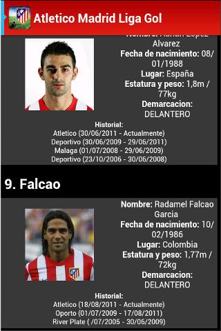 Fichas detalladas de todos los jugadores de la primera plantilla.Atletico Madrid Liga Gol is an application where you will find news, live broadcasts, and league data template.
