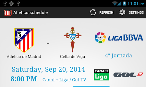 Also you can turn on notifications for the app you remember when the football game starts so you do not miss a match of Atletico
