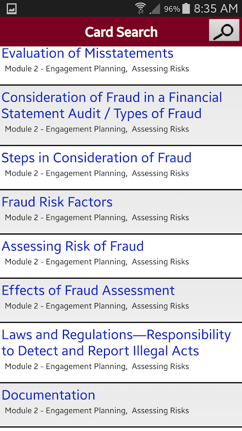 Wiley CPA Exam Review Focus Notes On-the-Go: Auditing and Attestation brings study cards covering the key concepts of the AUD section of the Uniform CPA Exam to the palm of your hand. This app offers an easy, quick way to reinforce AUD concepts and is produced by the same authoritative source that has helped over half a million CPA candidates attain certification over the past 40 years.