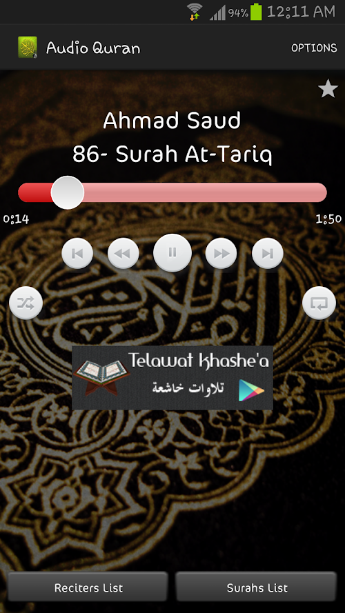 This version of Audio Quran Android App comes with one universal variant which will work on all the Android devices.