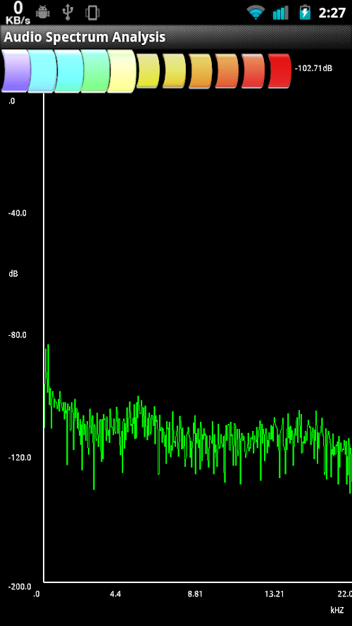 Audio Spectrum Analyzer shows you a detailed picture of What you are hearing in real-time, that is, as it happens. The audio spectrum analyzer shows the changing spectrum of live input signals up to 44,1kHz.