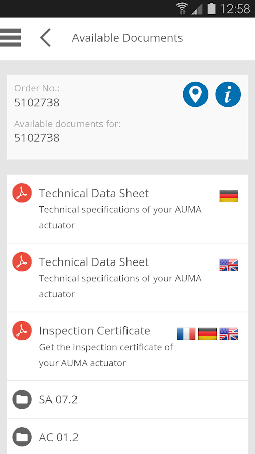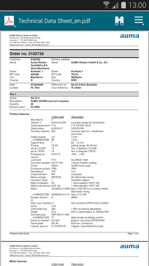The AUMA Support App allows you to access all documents available relating to your AUMA actuator.