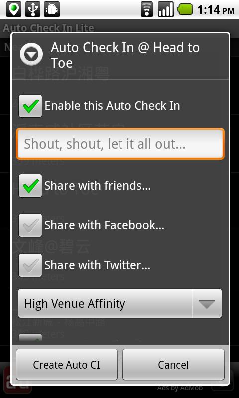 Note that this is only a Lite version, limited to three configured auto check ins.