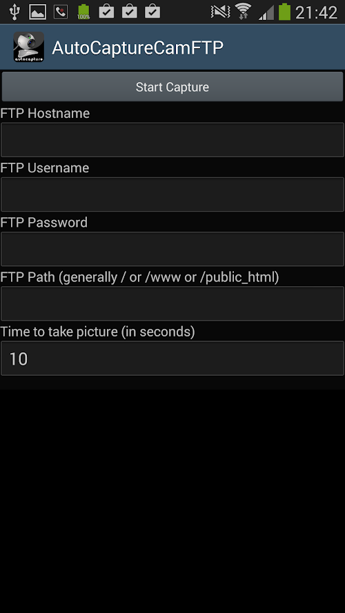 Witho Auto Capture Cam FTP you can use your camera to take picture at regular interval