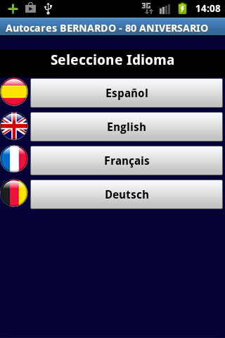 La aplicación, se presenta hasta en cuatro idiomas, Español, Inglés, Francés y Alemán, siendo posible en cualquier momento, cambiar de idioma sin problema alguno.