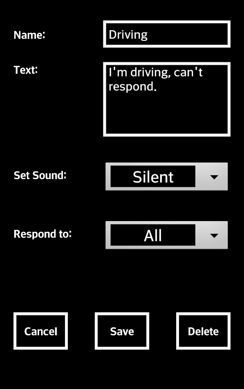 Make sure that you're friends know you're busy if you don't respond. Autosponse let's you set custom messages that can be activated with a single tap. The app will then automatically reply to any incoming texts or phone calls. Never again receive a phone call or text while driving, and worry that your friend will think you're ignoring them.