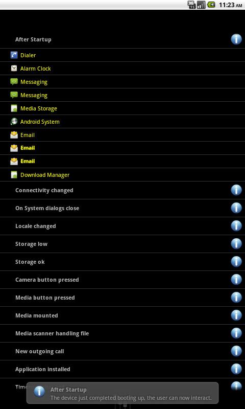 Android allows applications to register for a variety of events supported by the system, to be started whenever such an event triggers.