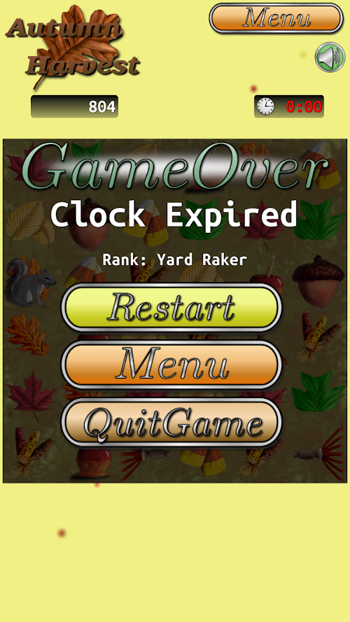 The game includes a five minute time attack mode, a challenge mode which ends once you've run out of moves three times, and Eternal Fall mode, which allows you to continue playing indefinitely, and without squirrels.