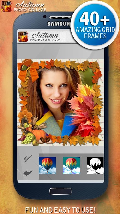 ☂Autumn Photo Collage Editor☂ is the best “photo editor” on the market and it is totally free! Wonderful colorful autumn leaves falling all over your display will make a great decoration for your new Samsung Galaxy mobile phone. Download the beautiful ☂Autumn Photo Collage Editor☂ now and make amazing "autumn collages" on your Samsung Galaxy mobile phone. If you get in the mood for fiery red and yellow leaves and rainy days, download the beautiful “Autumn Photo Collage Maker” and create beautiful “fall images” for your phone screen. Take the photos of you and your friends and family and make beautiful memories this fall. If your favorite season of the year is autumn, this is the perfect Android™ application for you!! Get it right now and make amazing "pics art" on your mobile phone!