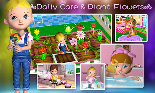 You can feed her all kinds of meals, drinks, desserts and fruits and take her to the bathroom to help her get ready for a new day. When she gets tired, you should take her to bed and she will wake up by herself or with the alarm.