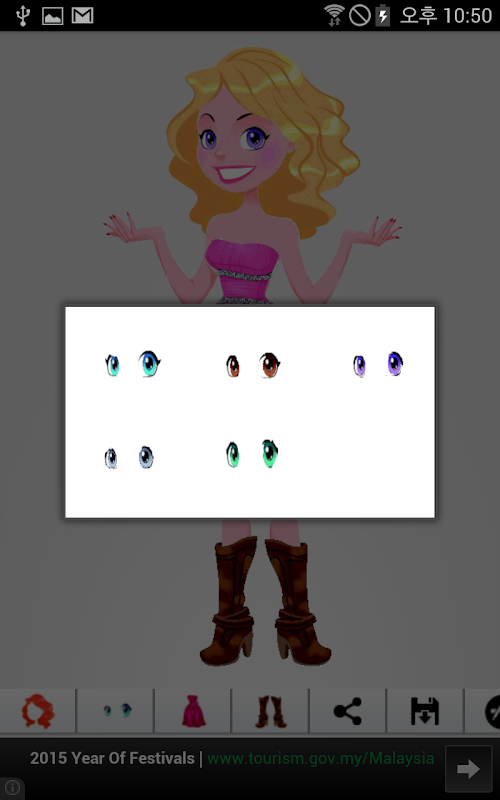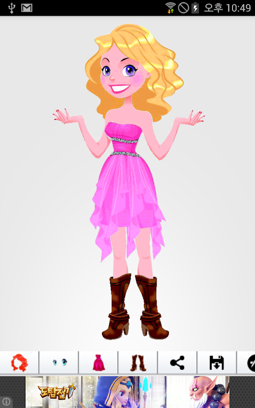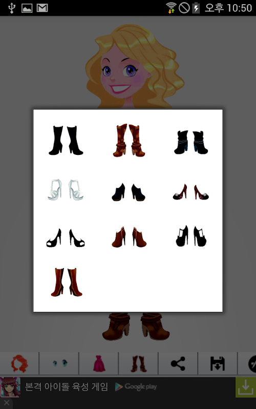 you can select Hair Style, color, eye color, dress, shoes etc..