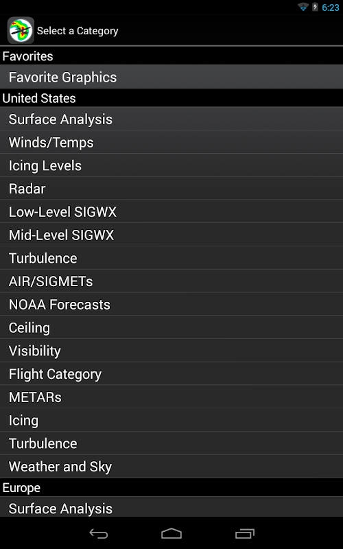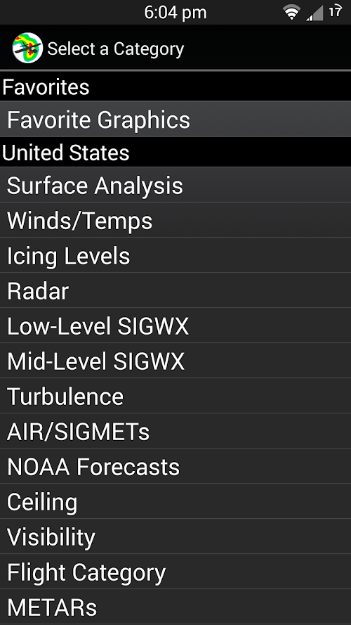 Aviation Weather Graphics provides HUNDREDS of weather graphics from all across the world! Quickly add graphics to your Favorites list for one touch access!