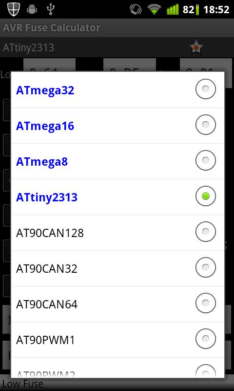 This fuse calculator for AVR microcontroller supports 144 devices.