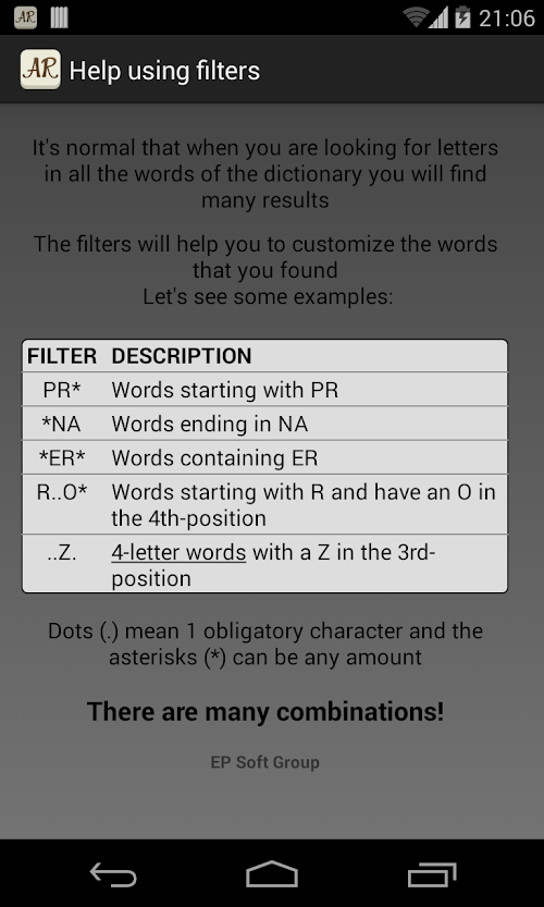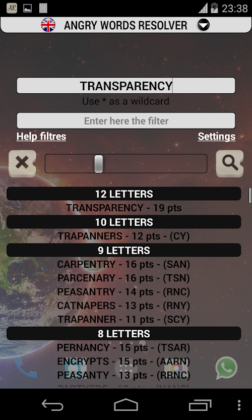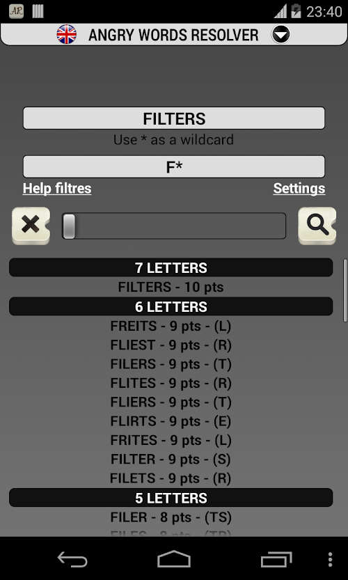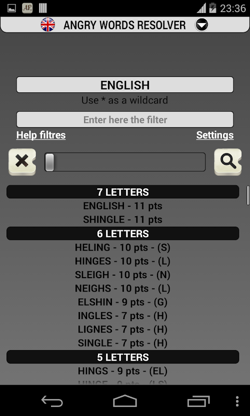This application will help you find words for the game Angry Words (Aworded) or any type Scrabble game.