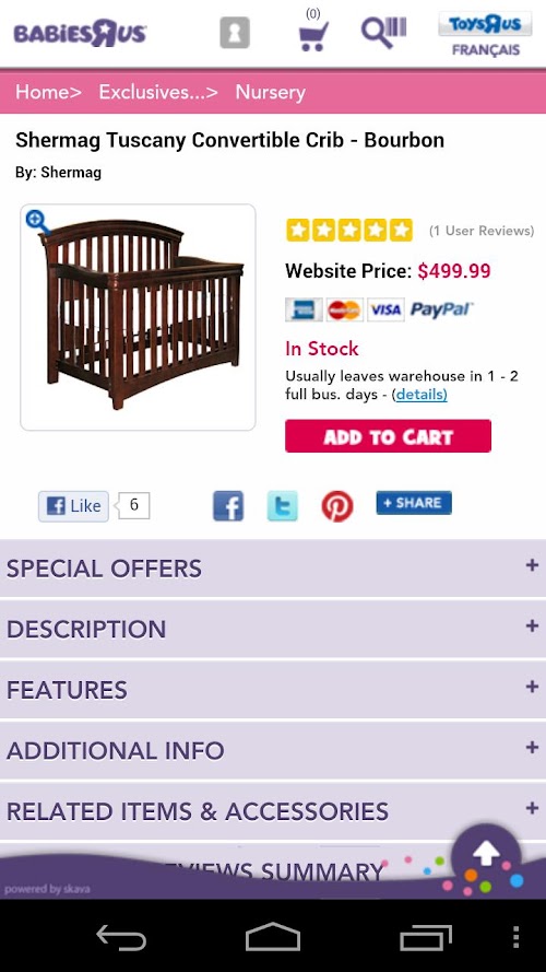 You can also shop Toys"R"Us without having to download another app or doing a separate checkout. All your children's needs from newborns to teens can be purchased through one shopping experience.