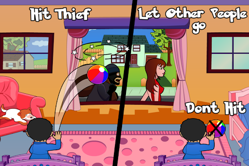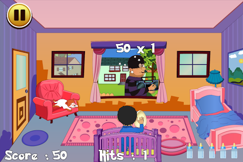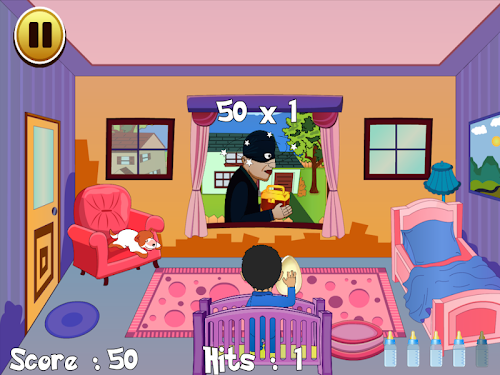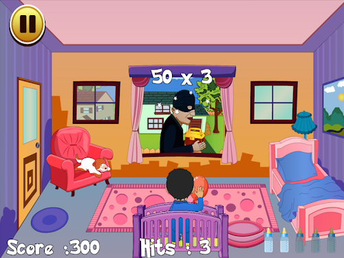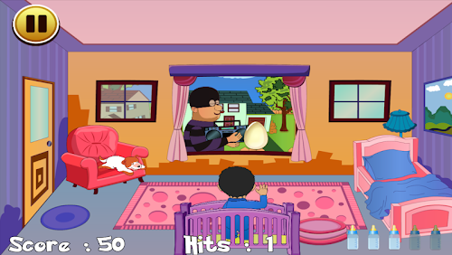 Your task as a baby is to throw balloon, egg, bottle , ball etc. on thieves , so that they can’t take away anything.