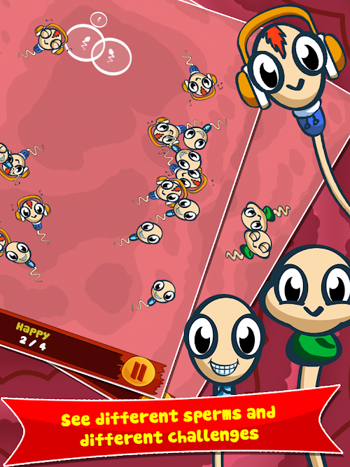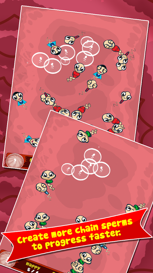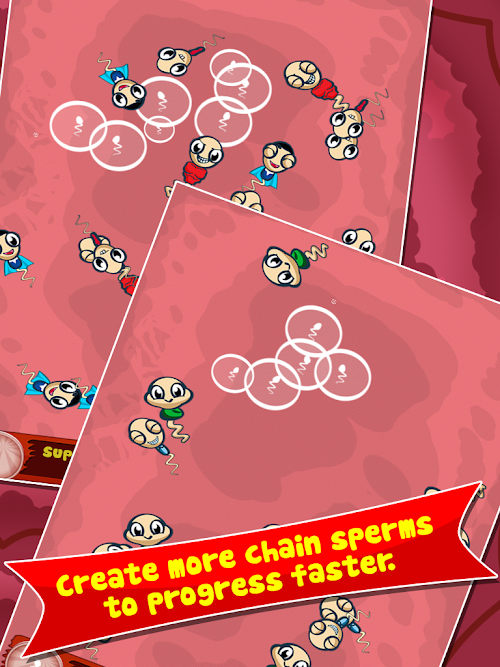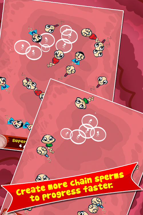 When you tap on screen, Chain reaction of sperms start. If another sperm makes contact with Chained sperm, the chain grows.
