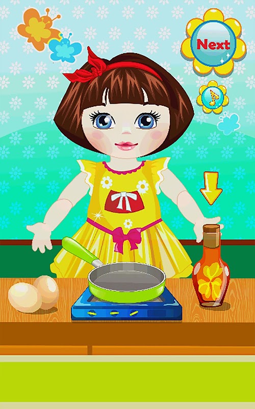 At the beginning of game players have to stop the flame in the kitchen and help the baby,