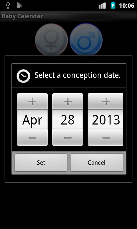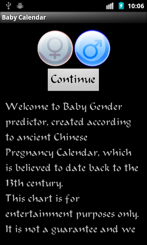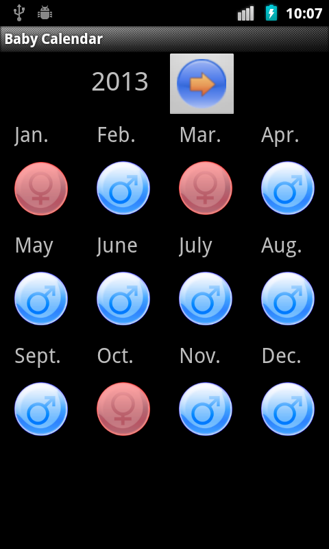 -Another,one year calendar of predictions - usefull when you want boy or girl and like to plan when to do it. To see full year view , first, pick a date, second, tap on calendar button on top of display. This view was created following user feedback (thanks, Mike).