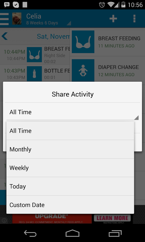 Other notable features is online syncing. Once logged-in to your Google account, BabyCare will let you auto-sync your data inside your own Google Drive account.