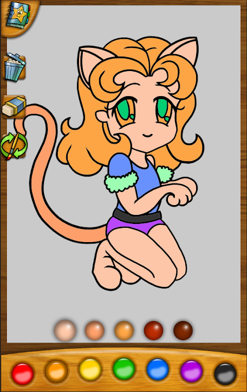 This is Cheerful Colorer. She likes to play coloring games. She lost her paints and brushes. Help Funny Colorer to color drawings in all colors of rainbow. She has a fine collection of pictures of beautiful girls in this game.