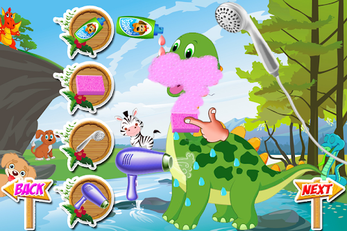 For washing and cleaning of newborn baby dinosaur you will be using shampoo, sponge, shower and dryer in washing salon, maker sure the baby dinosaur is no more dirty. After spa you will get the chance to feed the little dino with newborn baby mother milk, yogurt & custard.