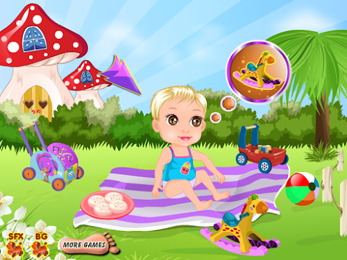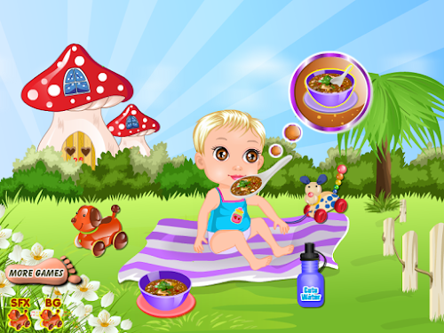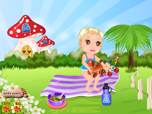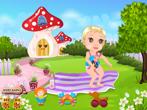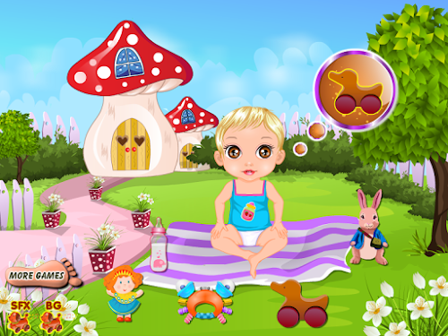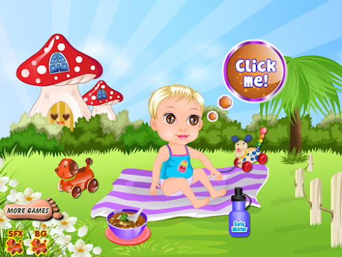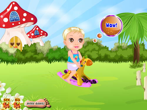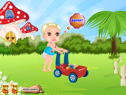 Soni begins to grow very quickly and would have to learn how to walk. Go to his garden, let him play with the items him have, help her to eat and should be prepared to learn to walk. Have fun with Soni. Help Soni to play with the small wood rabiit. Next you have to give a pacifier to stop crying and after that you have to give a bottle of milk and a bowl of soup because I noticed that he was hungry. It will try several times to get up but you will notice that there will be, so we must keep practicing less. You have to put in a car to help, but not enough. So you must try other methods to teach, you have to play ball with him or put him to chase after her. You will notice that Soni managed this and is very happy. We thank you Soni made to go, really needed this. We invite you to choose and other games for girls who must care for young children.