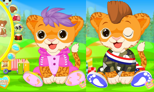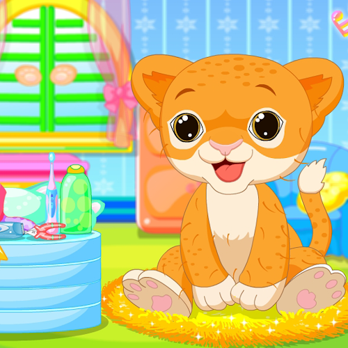 There's a rumor in the jungle that everybody is talking about: a new spa salon for animals is open now, and everybody wants to go there. This baby tiger is the first one to try it and he's so happy. Play with him and wash him, cut his fur and nails, wash his teeth and at the end dress him up as you like the most!