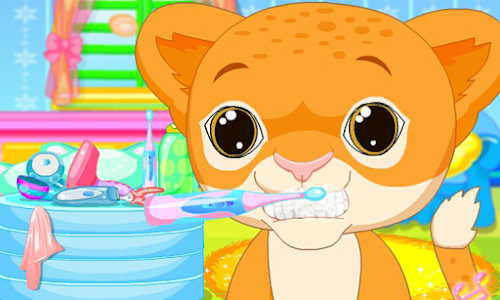 There's a rumor in the jungle that everybody is talking about: a new spa salon for animals is open now, and everybody wants to go there. This baby tiger is the first one to try it and he's so happy. Play with him and wash him, cut his fur and nails, wash his teeth and at the end dress him up as you like the most!