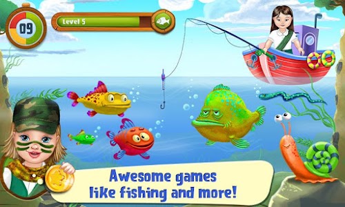 Go fishing with your baby friends on this interactive fishing adventure. Catch fish in a variety of shapes, colors & sizes! Careful, beware of the electric eel!