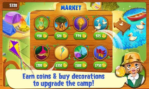 After a long day of adventures, it’s time to go to the market! Use the coins you earned while playing games to buy decorations for the camp. Upgrade the baby camp with torches, tents, animal friends & more!