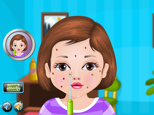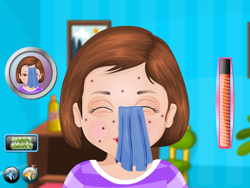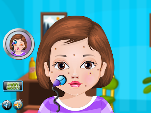 While preparing for the school, our friend Janice noticed that appeared a black point on the face. She tried to remove the nail, but failed and has done more harm. He started defends bridge over the face and very scared. She can not walk this way to school so I have to get her to a hospital with a medical professional on this job. After we reached the doctor must apply a layer of cream on the face and then rinse them must face little to remove slowly. Still have to anoint another cream to her face clean and then you have to rinse with water to dry the cream. Further points have to press them to try to root them out and then have to get permanent root. You have to wipe front to leave no mess to her dirty face. We need to reapply a layer of cream to the face after that we disinfect wash again and we see that there's no point on the face. We invite you to try other games for girls online to test your skills in child care.