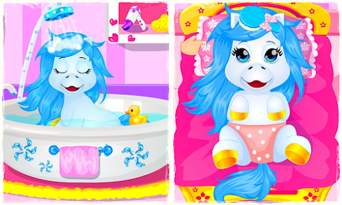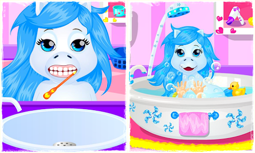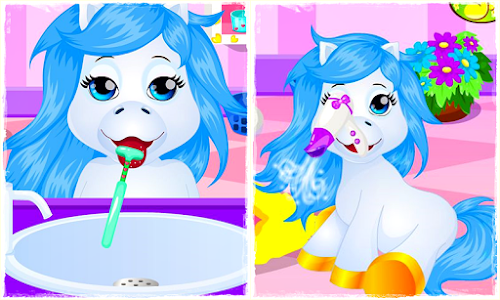 The little baby pony just woke up and needs your help to get ready for a new day! Are you ready to wash his face, brush his teeth with different colored professional tools and clean his tongue? Your pony is also dirty so get the shampoo and sponge for it’s bath time! This is so much fun! When you’re done washing him up change his diaper and choose from dozen of dresses, hairstyles and cute accessories to dress him up. Every activity is a chance to love and care your little beautiful pony!