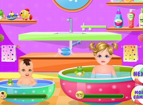 Take care of the siblings and give them a nice warm bath. Wash Alanis and her little new baby sibling. There is also time for some playing in the bath!