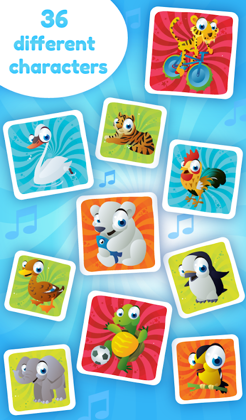 Within the "GAME" mode the children develop and improve their memory skills by matching sound with related characters.
