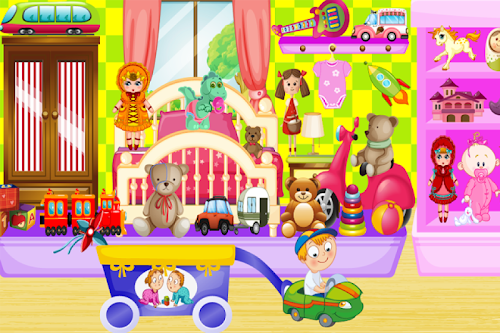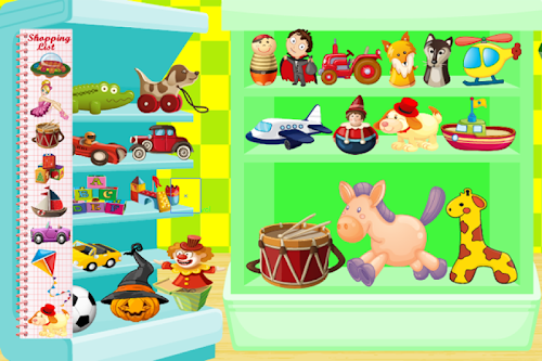 Hello, kids! Welcome to Baby shopping center. Do you like shopping? Of course, who doesn't? This is a shopping game inside a big toy store. A sales attendant will be helping you by carrying the cart for you as you do your shopping according to your list. There're so many different toys in our game. Puzzles, princess dolls, doll houses, little soldiers, cars, planes and teddy bears etc. This game is a hundred percent free. You need to finish shopping in the time given to you, if you fail to finish it on time, you will have to start all over again. This is why you need to be fast. Look at the names of toys on the list on the right side of the screen and slide left or right to find what you're looking for. When you find what you're looking for, click on it and wait for the sales attendant to put it in your cart. Now you're ready to find the new toy. With this game, you can have fun as you boost your motor and mental skills.