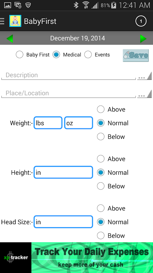 Baby’s First Moments was designed for quick and simple record keeping of these events, but has many professional features only found on expensive apps, like auto backup, and exporting to excel. Forgot to enter a days event? Not a problem, just pick the day on the calendar and enter the event. Baby’ First Moments allows you to keep notes for each event entered; "Wow, that was a really great day!"