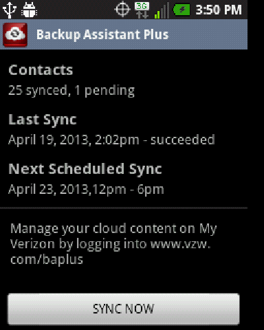 Backup Assistant+ Contacts for Optimus Zone is a free application from Verizon Wireless which automatically syncs your address book to secure online storage. Your contacts can then be easily restored to a new phone if you lose, damage, or decide to upgrade your existing phone.