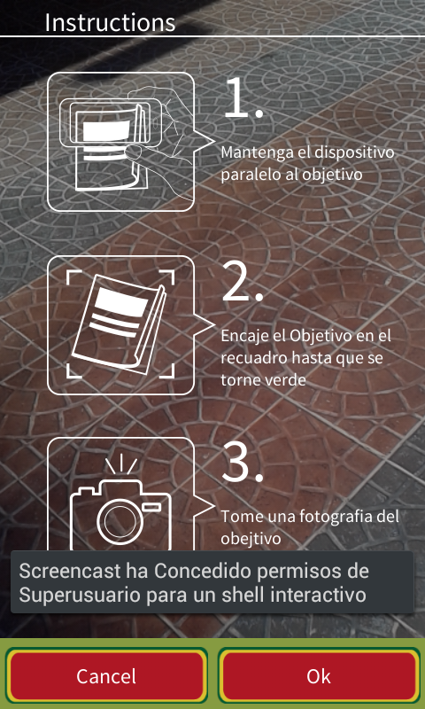 2- Apunta la cámara de forma paralela a la figura o billete, toca en el centro de la imagen en la pantalla del celular o tablet para que la cámara haga foco en el objetivo y espera que las esquinas se pongan en verde.