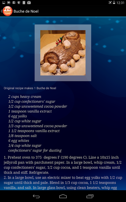 Baking recipe app hunting just got a whole lot easier, with this free app. Cakes, pies, rolls, swirls, cupcakes, cookies, fruitcakes, gelatin molds, and more! If you are a holiday baking fanatic or you just need a new idea for your upcoming party, this app has many ideas to help you wow them with holiday goodies. Buche De Noel, Sticky Toffee Pudding, Christmas Cookies, Christmas Cakes, and even Gingerbread houses! This easy to use and understand Baking Recipe app will delight and awe you and yours.
