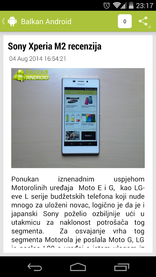 + Prilikom pregleda vijesti prevlačenjem prsta (Swipe) se otvara slijedeća ili prethodna vijest.