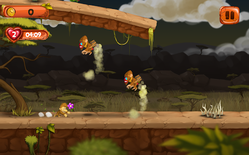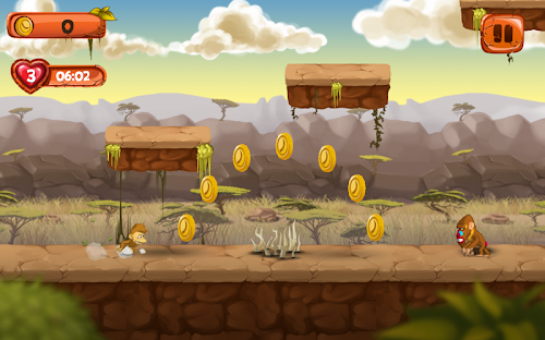 Crazy “monkey run”! Despicable baboon king has kidnapped Bobo's girlfriend Lily and wishes to make her his jungle queen! Save her before it's too late! Enter the jungle survival, prepare for the most thrilling animal escape ever seen in “run and jump games”, unlock new worlds, and beat'em up in this jump n run quest!
