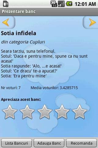 Cu ajutorul acestei aplicatii puteti vizualiza, adauga, vota si trimite bancurile.