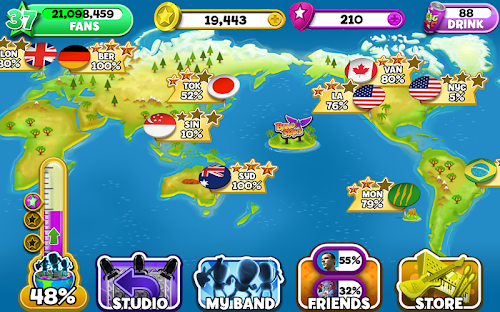 • Earn piles of coin and upgrade your gear to dominate the world of music