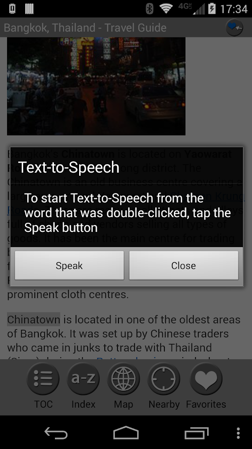 MobileReference Travel Guides provide detailed, practical information about attractions, landmarks, transportation, cultural venues, dining, lodging, history and much more. They are indexed alphabetically and by category, making it easier to access individual articles. Attractions can be viewed on an offline GPS map along with your current location so that you can easily find attractions near you as you explore the city.