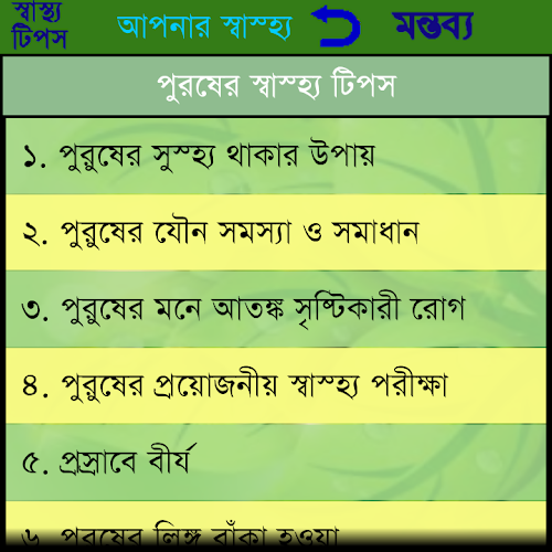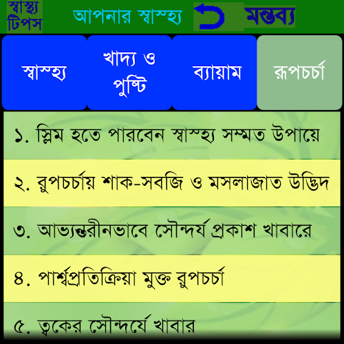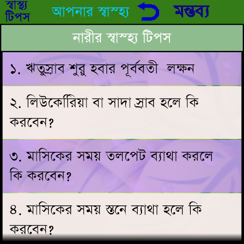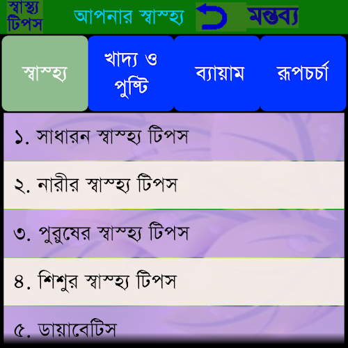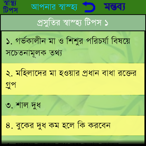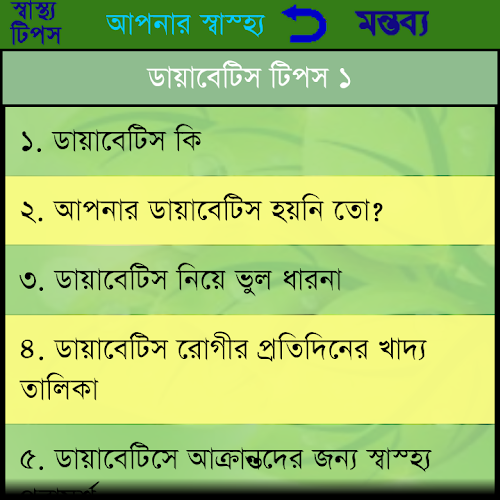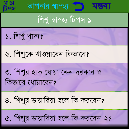 This app contains the health tips description in Bangla