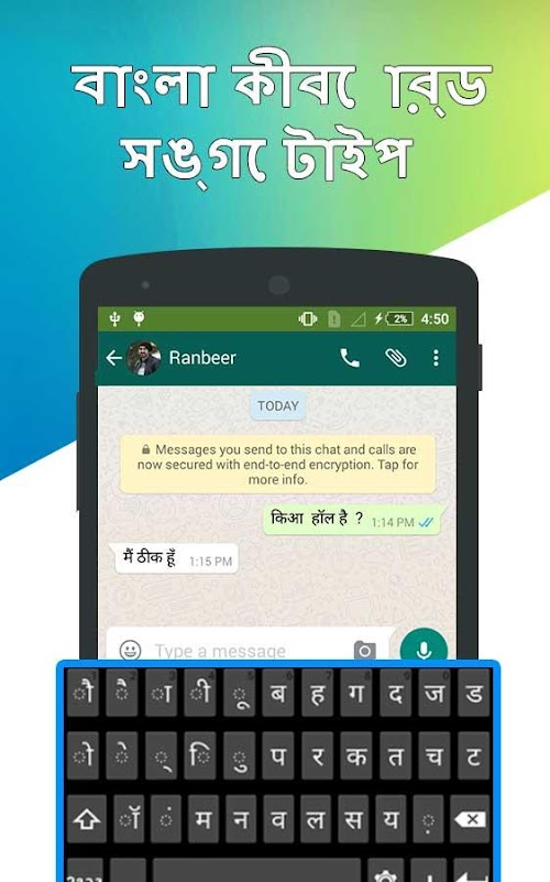 Bangla Keyboard & Easy Bengali Typing input method is the best mobile keyboard for typing in Bengali language. Bangla keyboard allows users to write message in Bengali language while using Bengali text words. Bengali keyboard is an input method to type Bangla using Bengali to English translation or roman to Bengali typing. Now send message, email, and update status in Bengali by using Bangla Keyboard.